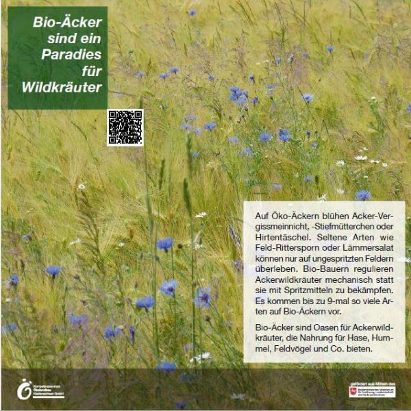 Der Ökolandbau leistet viel für den Naturschutz. Mit Feldschildern zu neun verschiedenen Themen können Landwirte Spaziergänger oder Fahrradfahrer am Feldrain darauf aufmerksam machen. Die Schilder sind wetterfest und können zum Beispiel auf einen Pfahl geschraubt werden. Diese Feldschilder tragen neben dem KÖN-Logo die Logos der Sponsoren, zur Auswahl entweder das Logo des ML oder der Rentenbank. Bitte bei der Bestellung angeben.